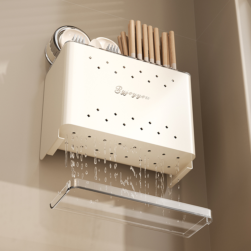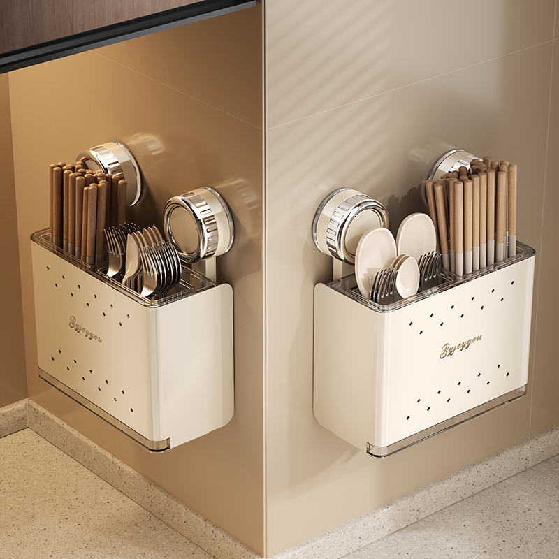 吸盘筷子筒壁挂式 沥水筷笼篓 家用厨房置物架免打孔筷子收纳盒新款