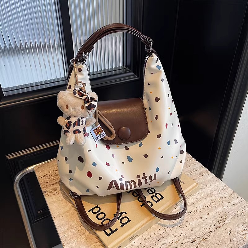 单肩包包女2025新款 百搭托特包大学生通勤双肩包包 大容量波点时尚