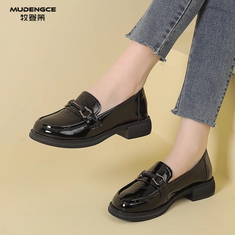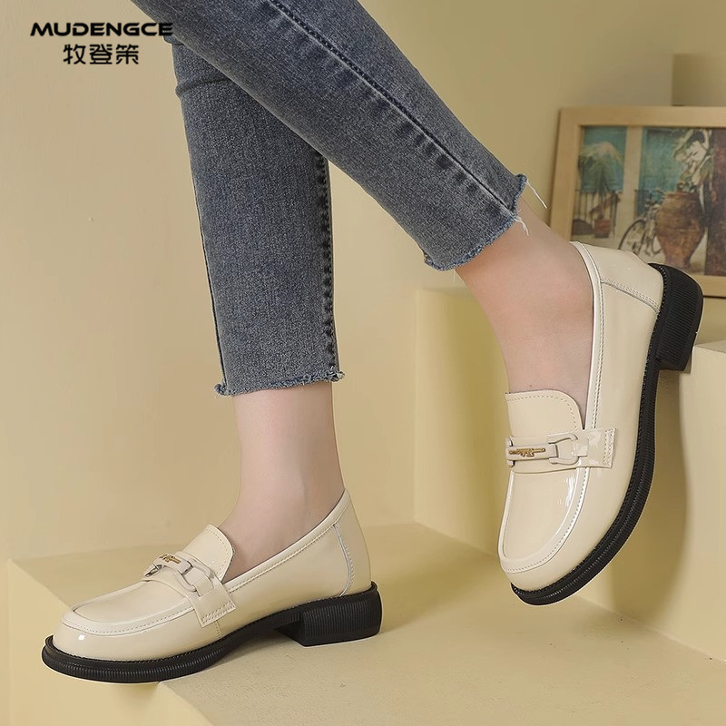 粗跟显瘦减龄皮鞋 新款 轻便舒适一脚蹬 女春季 复古英伦风软底乐福鞋