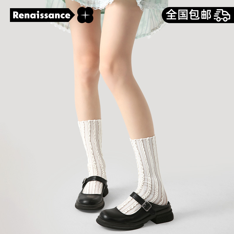 小腿袜子女春秋季 JK潮 过膝袜纯棉中筒袜微压显瘦无骨长筒长袜夏季