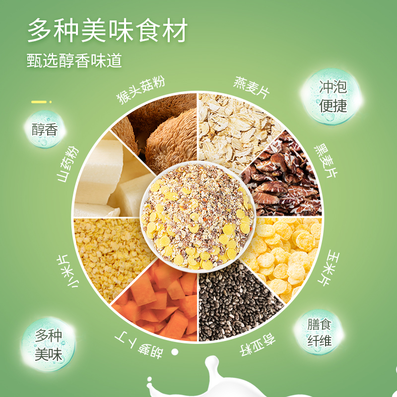 猴头菇山药小米燕麦组合片免煮代餐正宗五谷杂粮燕麦饱腹不添加糖