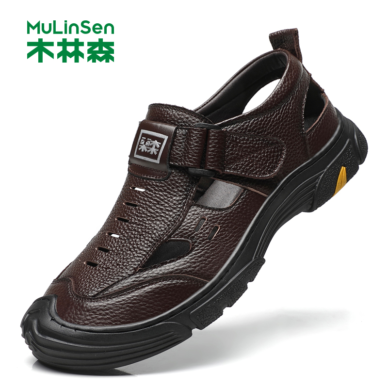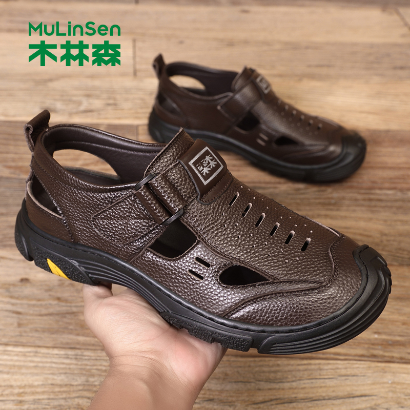 男头层牛皮休闲皮鞋 木林森男鞋 真皮镂空透气皮凉鞋 新款 男 2025夏季