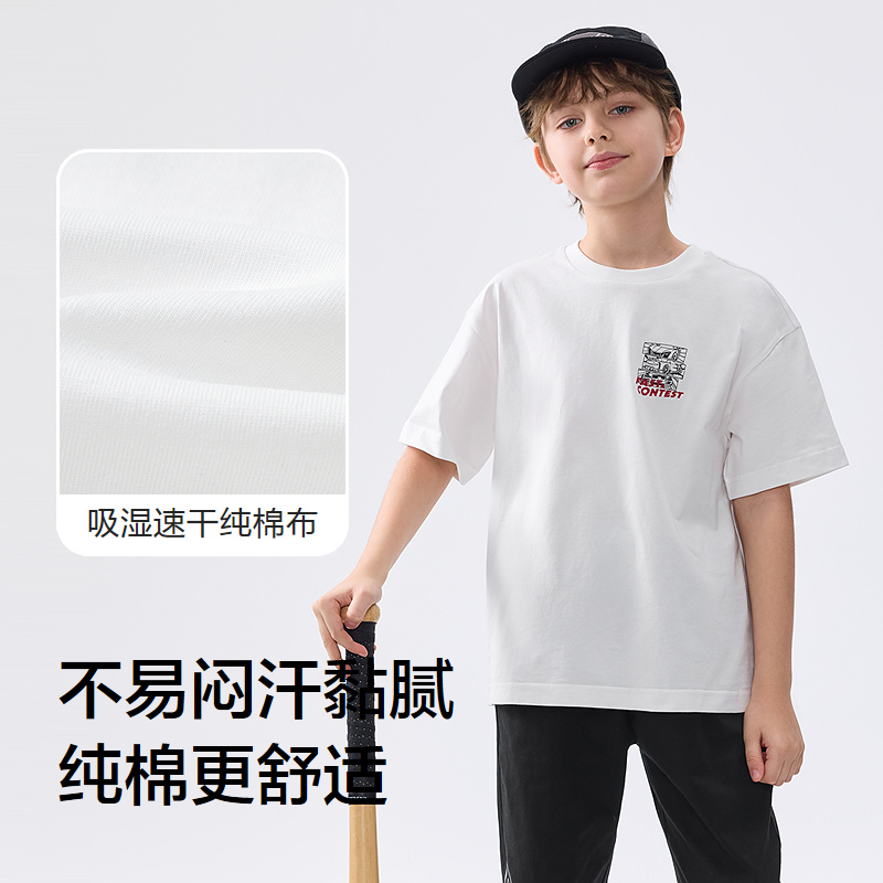 童装 2025夏新款 t恤大童纯棉速干衣儿童运动半袖 巴拉巴拉男童短袖