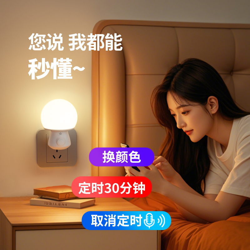 床头卧室睡眠灯婴儿喂奶护眼语音控制老人起夜间节能小夜灯插电款