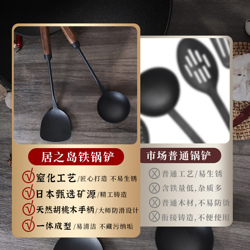 进口窒化铸铁锅铲无涂层不易生锈铁铲氮化防锈老式 铲子铁汤勺套装