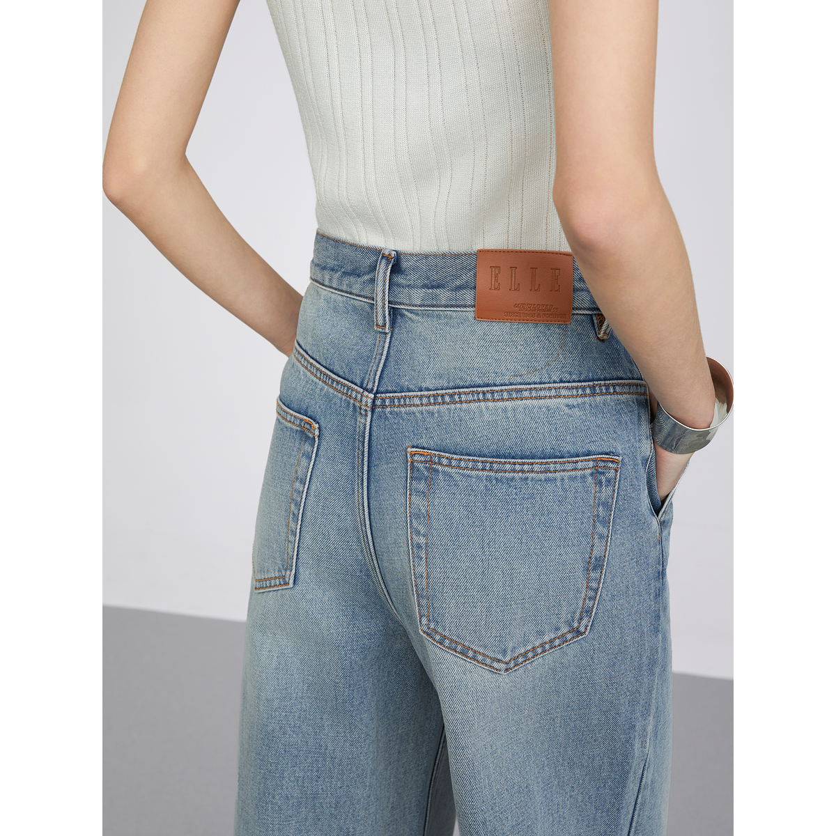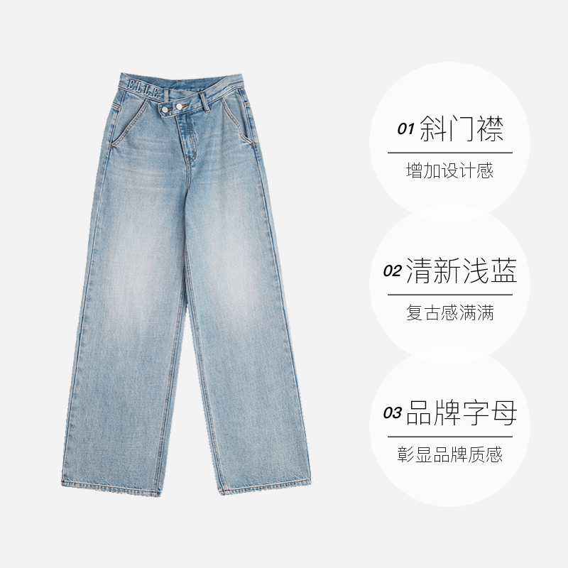女2025春新款 莱赛尔天丝高腰牛仔裤 ELLE法式 小个子直筒裤 自营