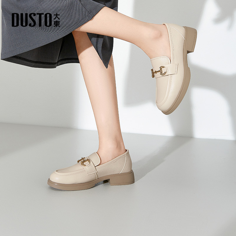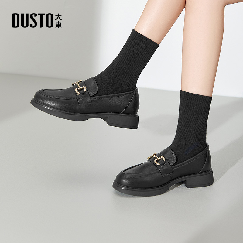 新款 2025秋季 时尚 粗跟圆头小皮鞋 大东乐福鞋 英伦风套脚女单鞋 女鞋