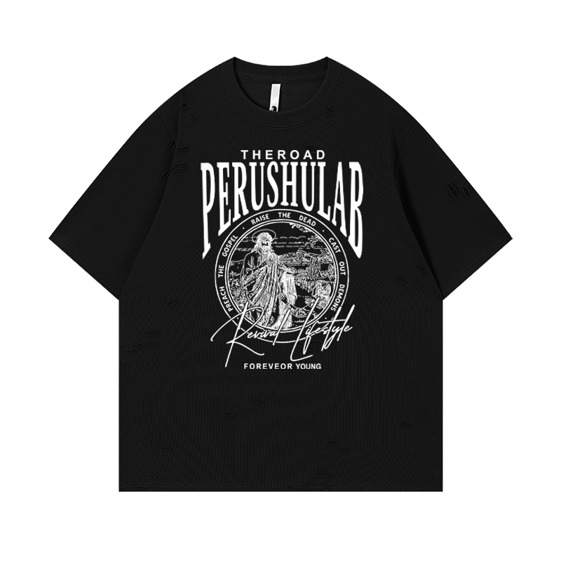 痞帅设计感情侣半袖 特大码 T恤男女夏季 复古破洞短袖 体恤 300斤美式