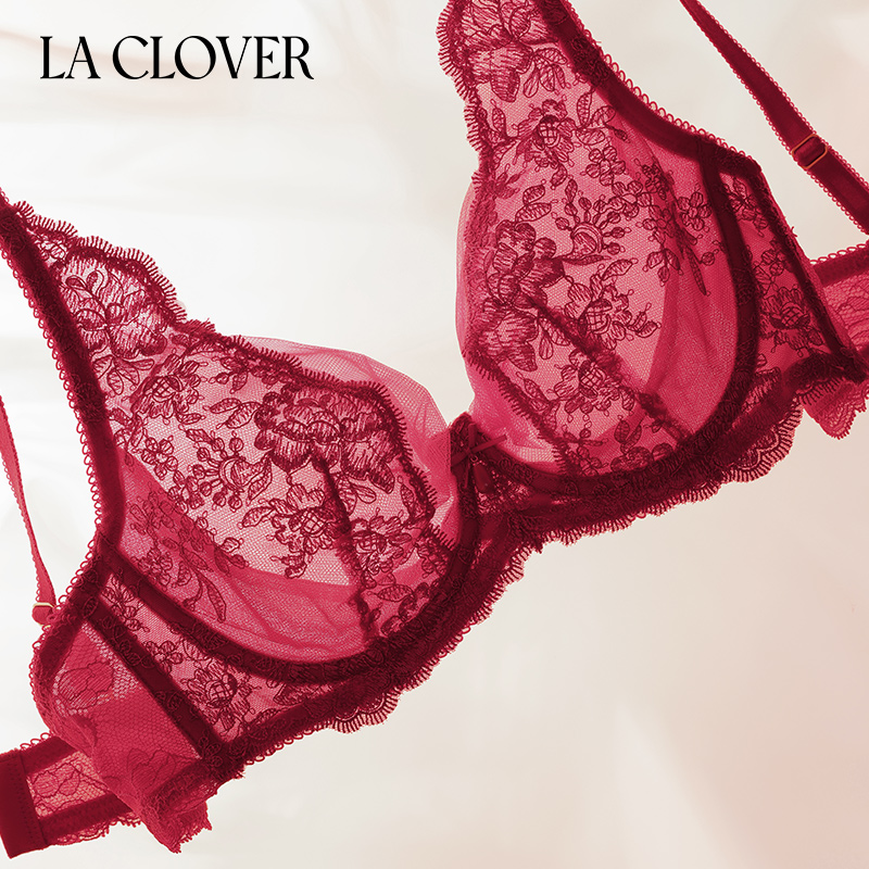 LACLOVER性感蕾丝网纱薄杯文胸大胸显小女内衣挚爱洛可可LC13RG1