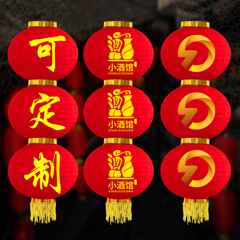 户外防水大红灯笼串绸布圆三四五连串折叠广告新年元 饰灯笼串 旦装