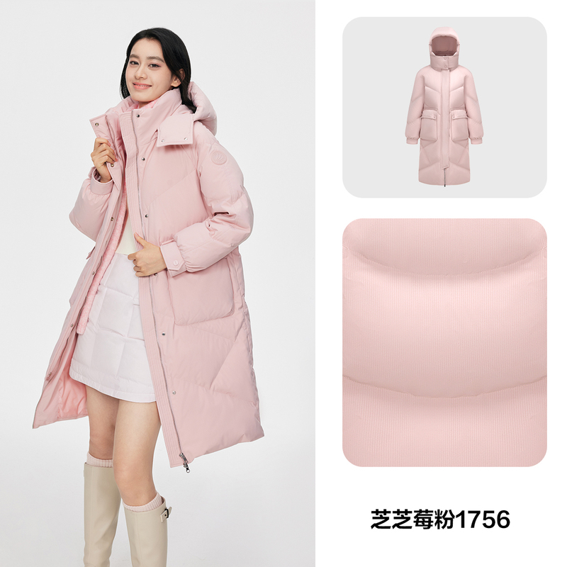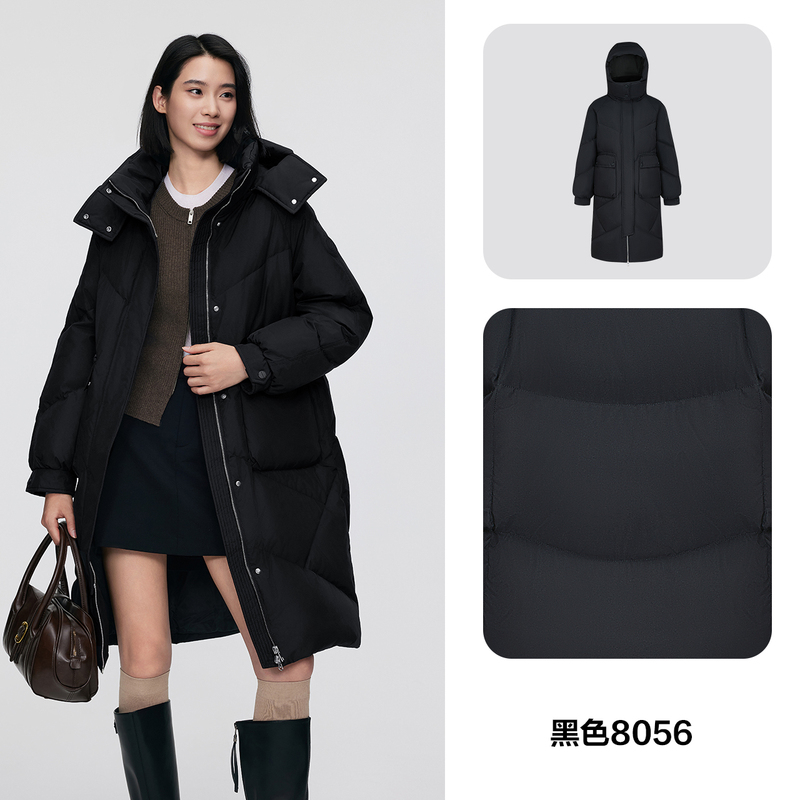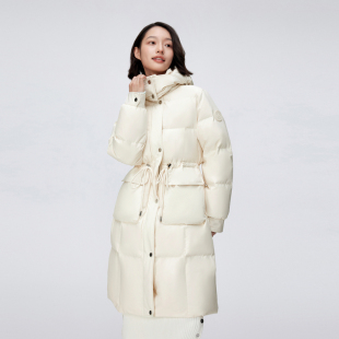 波司登冬季 狐狸毛领可脱卸帽都市女人味中长小廓形羽绒服 新款