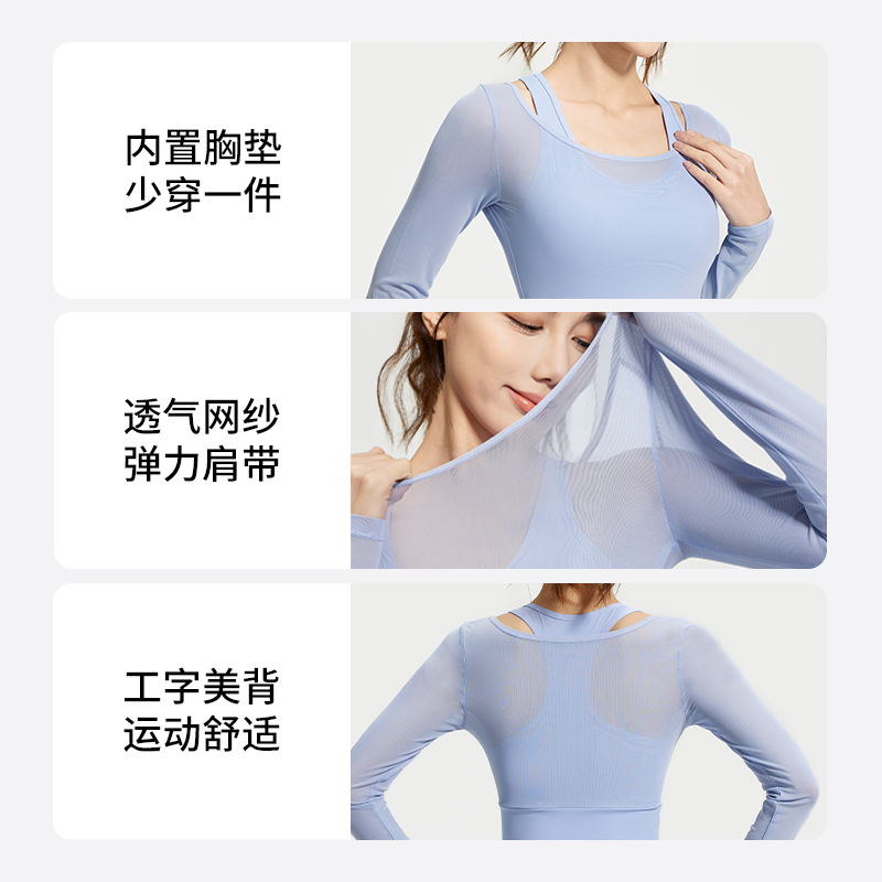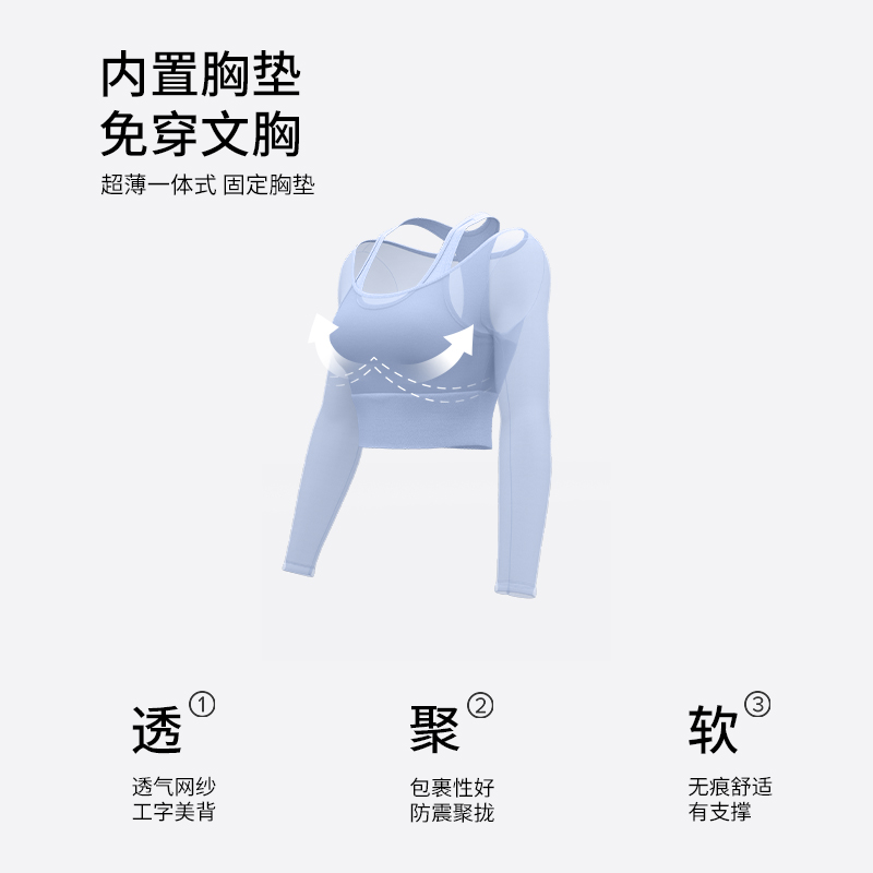 瑜伽服女春秋运动上衣带胸垫紧身显瘦长袖 跑步训练健身服 气质时尚