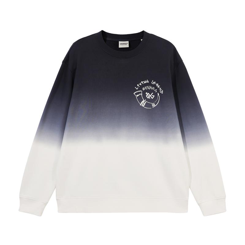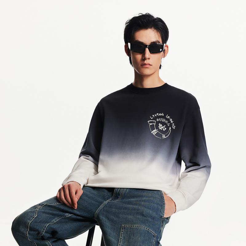 纯棉宽松情侣卫衣撞色胶印圆领外套男装 杰克琼斯秋季 渐变吊染