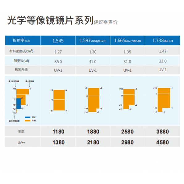明月镜片防蓝光眼镜浅底色护眼非球面1.71超薄近视眼镜片定制配镜