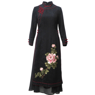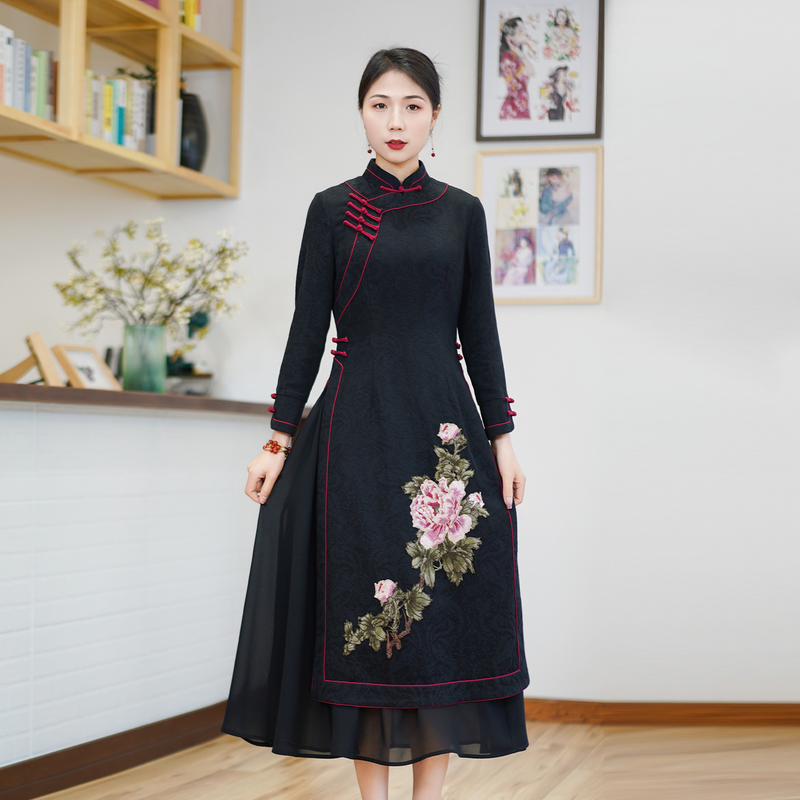 如意风中国风奥黛旗袍春秋新款 改良高端复古气质日常连衣裙24R527
