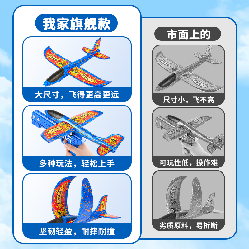 网红弹射泡沫飞机发射枪男孩户外手抛发射枪风筝飞天小孩儿童玩具