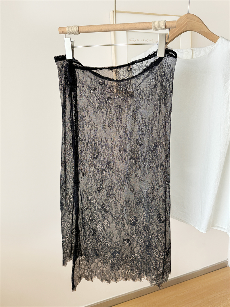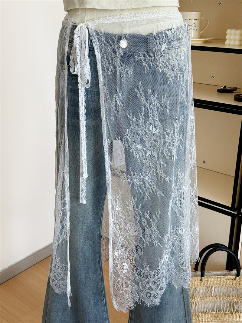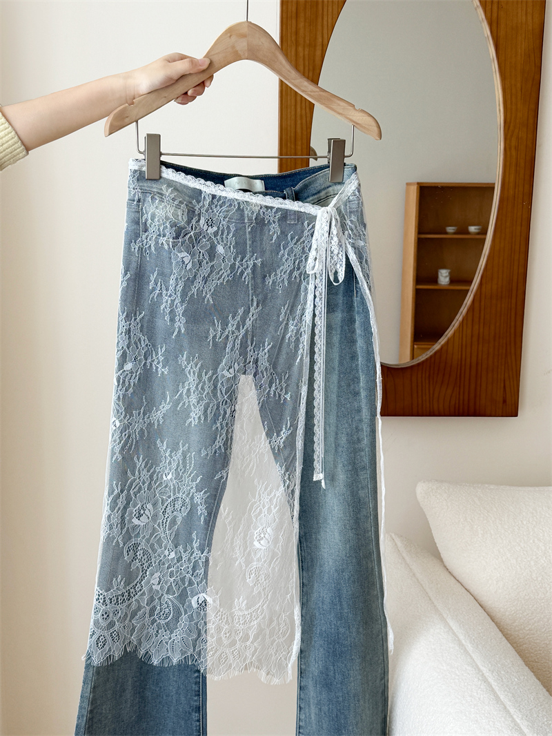 508227 蕾丝花边蛋糕裙a字半身裙子女装 三福牛仔短裙2025新款 秋季