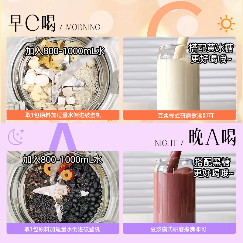 早C晚A破壁机食材包五黑五谷杂粮料包豆浆包打豆浆杏仁七白饮组合