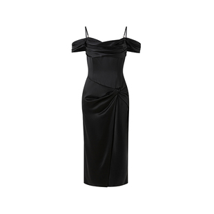 莫代尔棉连衣裙女2025夏秋新款 显瘦包臀黑色吊带鱼尾长裙 性感修身