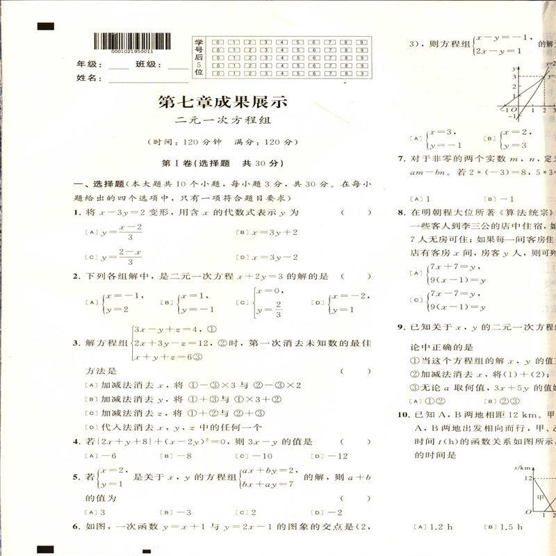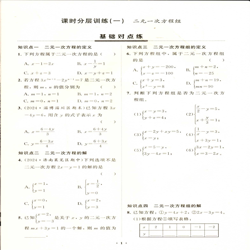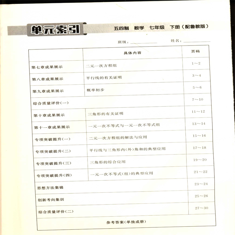 2025春五四制数学7七年级下册初中同步练习册分层卷配鲁教版 社 山东教育出版