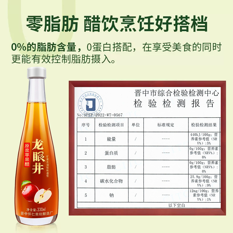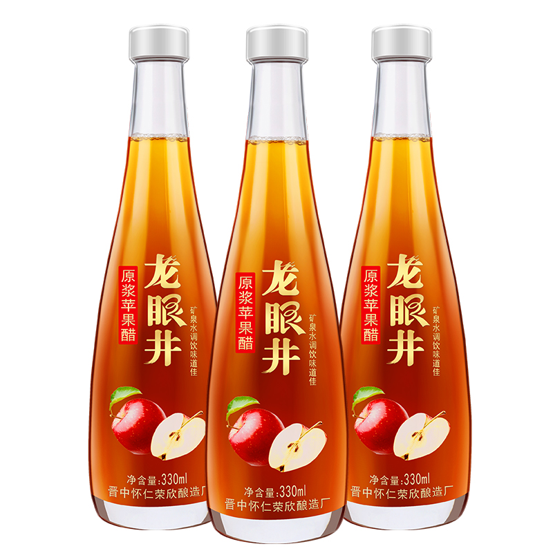 龙眼井原浆苹果醋330ml解腻0添加果醋水果醋无糖型纯苹果原醋饮料