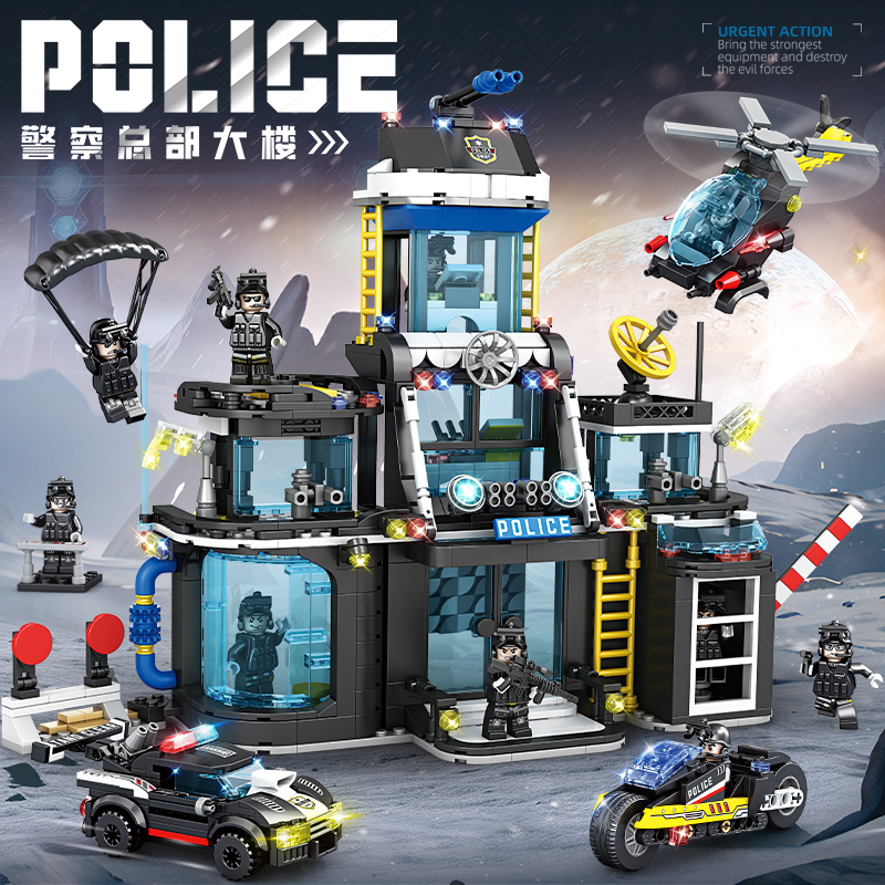 大号特警警察大楼积木拼装 警察汽车儿童 男孩益智玩具2025年新款