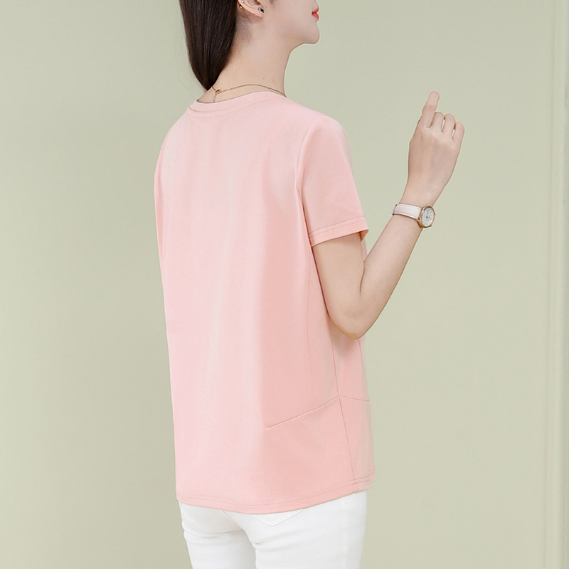胖mm遮肚洋气正肩体恤上衣 T恤女大码 2025夏季 亮片字母刺绣短袖