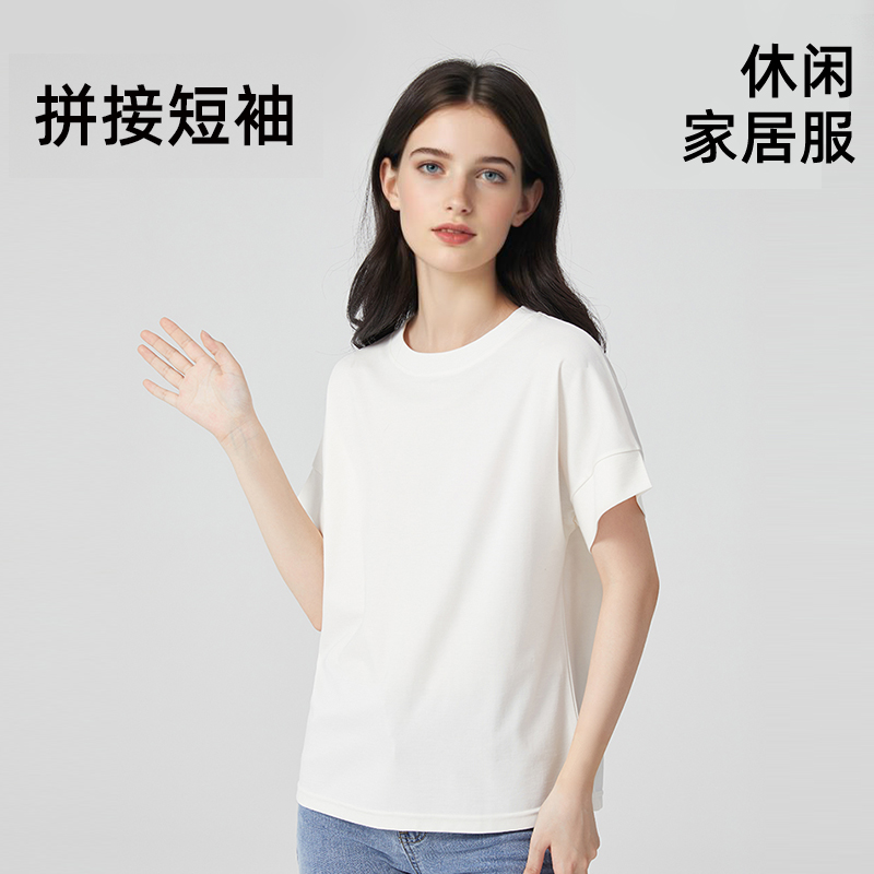 圆领自带凉感拼接短袖 冰感纯色T女经典 舒适家居服 款 丝洛2025夏季