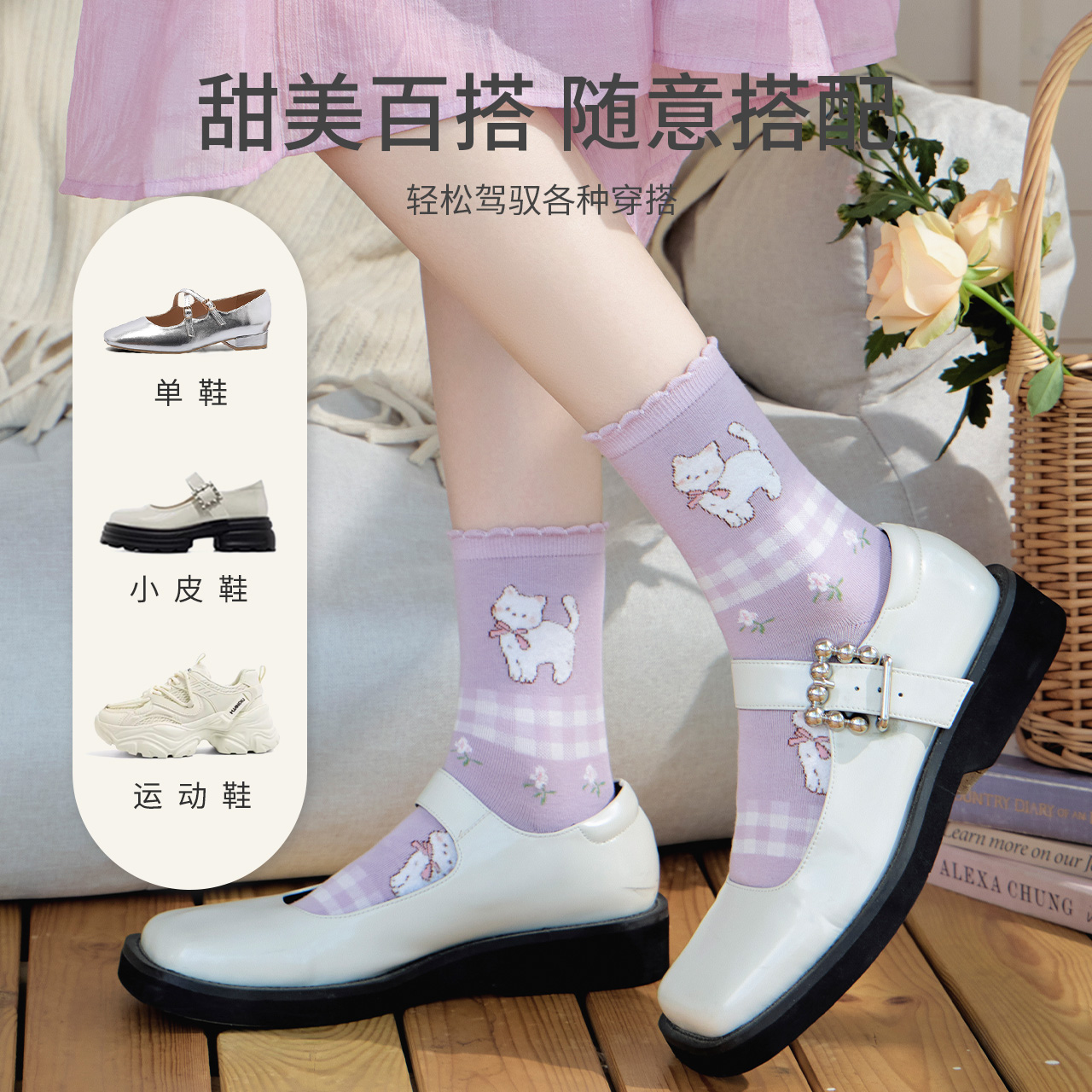 棉袜夏季 木耳边袜子女款 纯棉春秋无骨短袜防臭吸汗中筒袜配小皮鞋