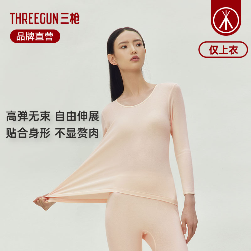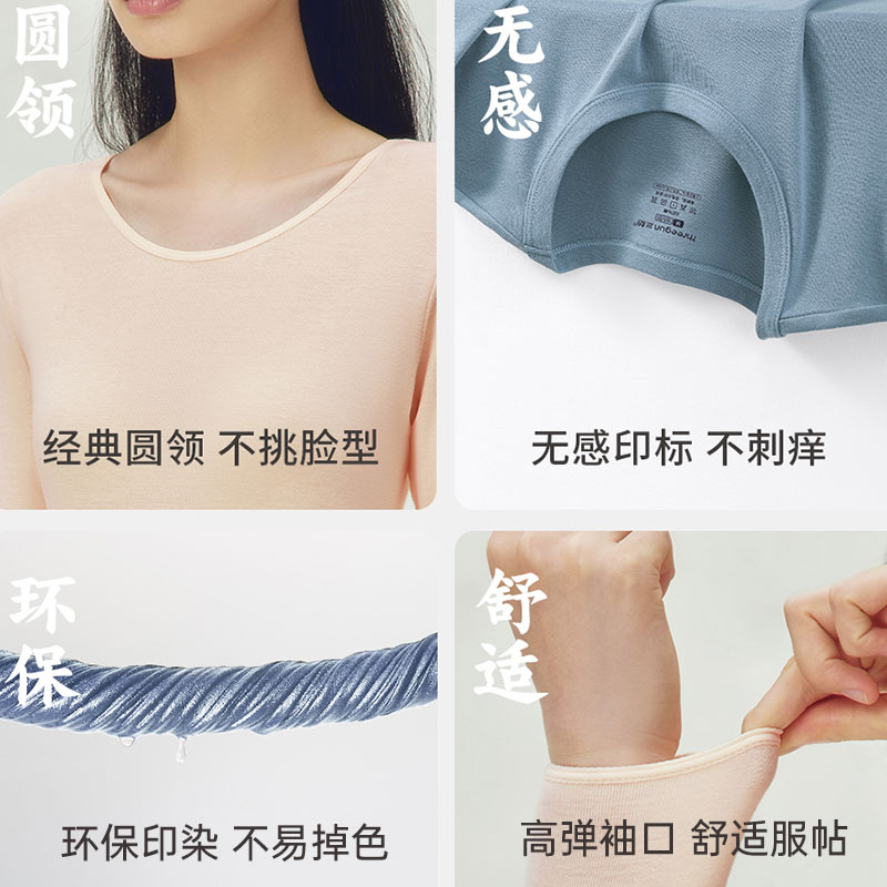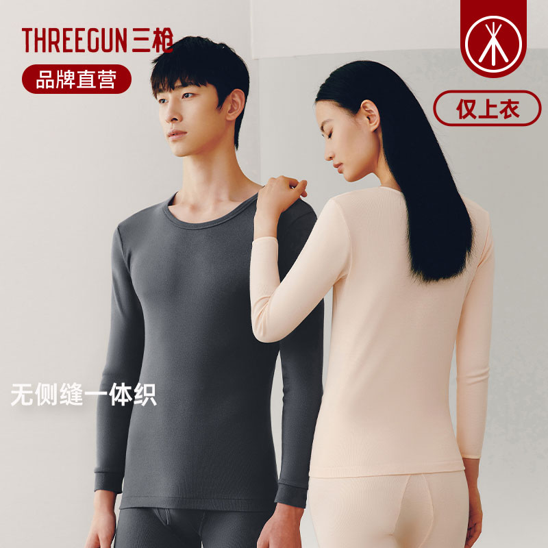 男款 打底衫 圆领抗静电情侣单件 保暖内衣女款 三枪秋衣上衣纯棉薄款