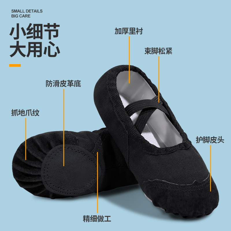 跳舞鞋 舞蹈鞋 成人芭蕾舞鞋 儿童中国舞练功鞋 子 黑色男童软底形体鞋