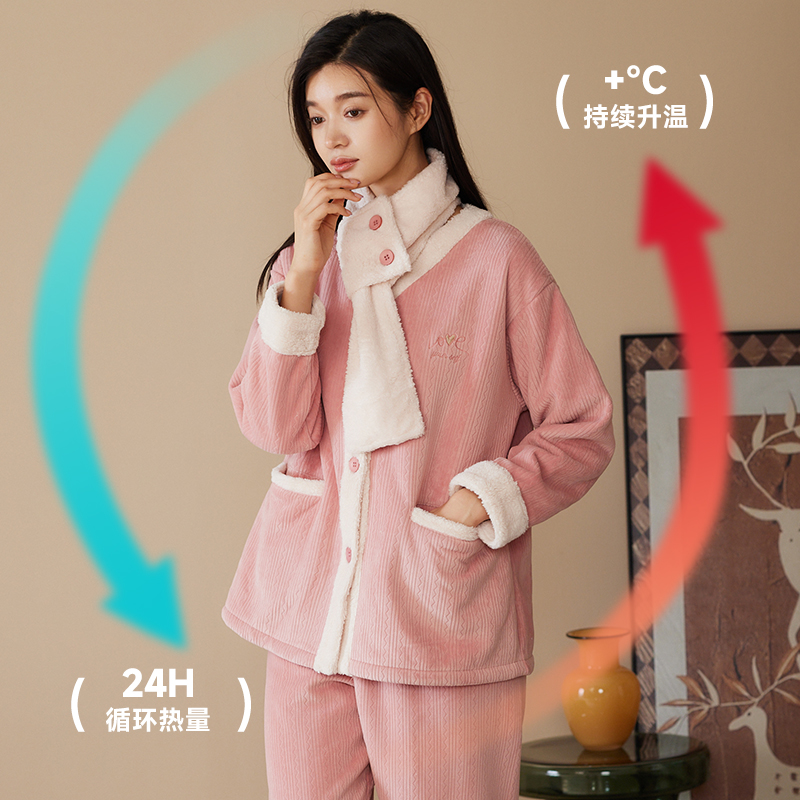 加绒加厚可外穿家居服套装 秋鹿 新款 珊瑚绒睡衣女秋冬季 超柔软