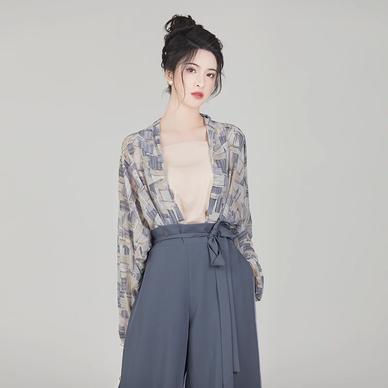 阡陌 夏款 吊带宋抹飞机袖 套装 女 上衣改良宋裤 织造司原创宋制汉服