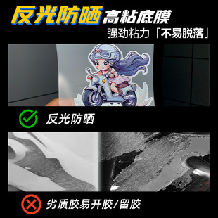 原创电动车女孩装 饰贴划痕遮挡摩托车反光贴 饰贴纸可爱卡通车身装