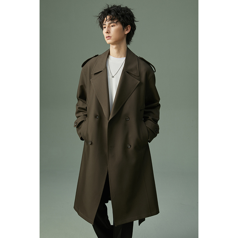 韩版 长款 呢子加厚风衣外套 2025春秋季 V37黑色高级感毛呢大衣男款