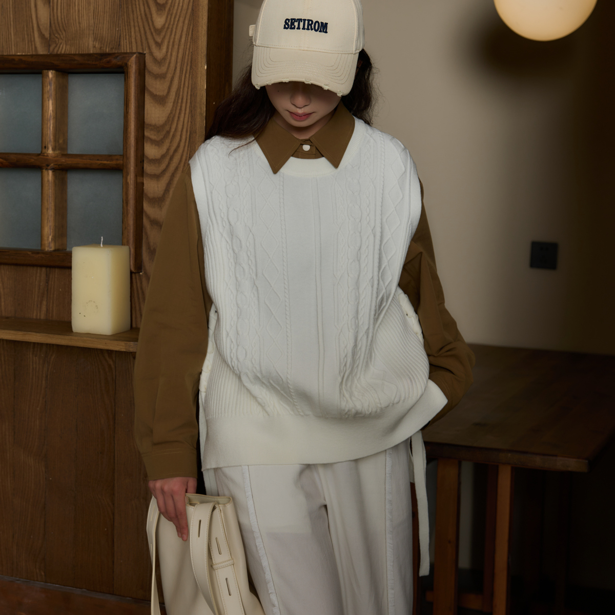 背心HA9222001 文艺绞花保暖无袖 西町村屋针织马甲女百搭春装 新款
