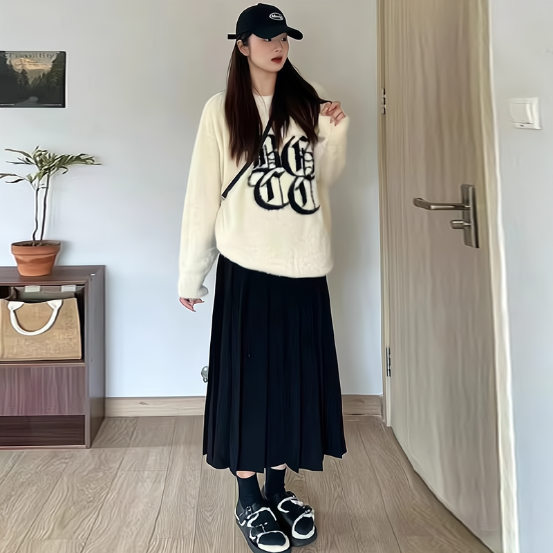 510457 木耳花边裙摆优雅美拉德半身裙子女装 三福长裙2025新款 冬季