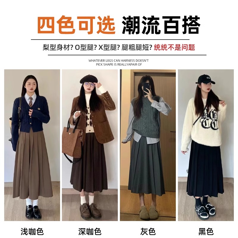 美拉德咖色灯芯绒半身裙女秋冬微胖大码 百搭高腰遮胯a字百褶短裙