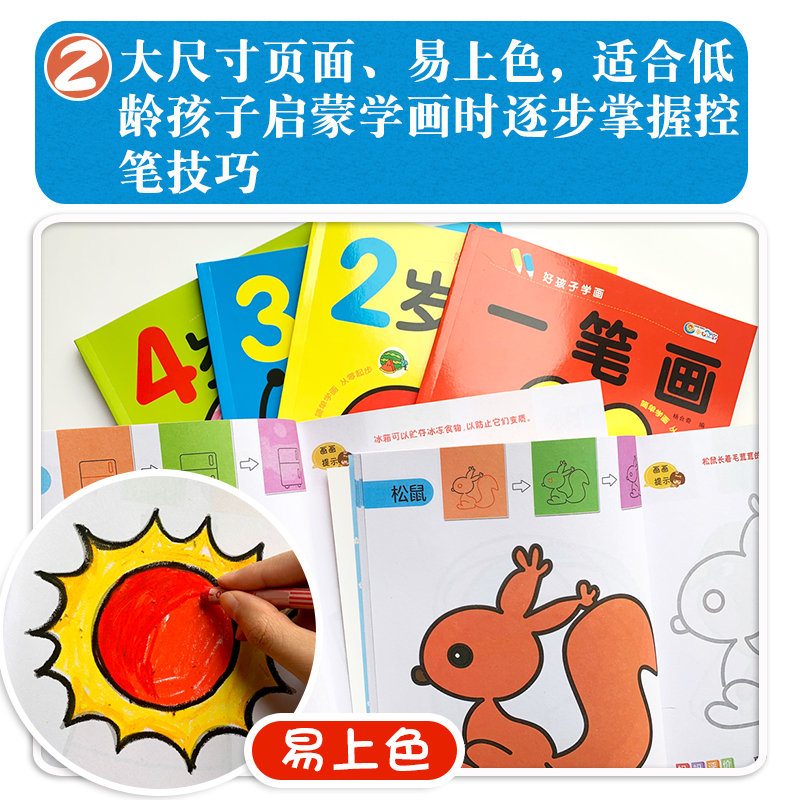 5岁幼儿园涂鸦填色绘本图画绘画册套装 一笔画二笔画美术入门临摹学画 好孩子学画全6册儿童画画教材宝宝涂色书幼儿简笔画启蒙2