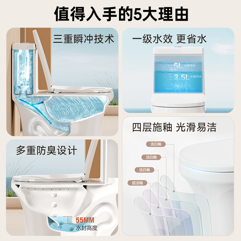 箭牌卫浴马桶大冲力小户型家用卫生间防溅防臭抽水节水坐便器连体