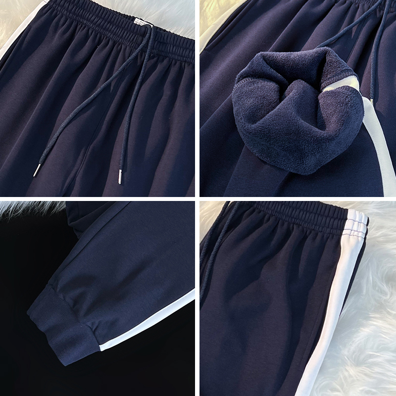 加绒一条杠拼色休闲运动裤 初高中学生校服裤 男女通用宽松束脚冬款