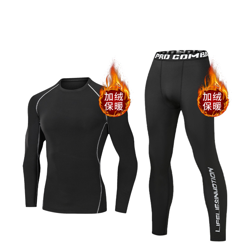紧身秋衣秋裤 加绒加厚秋冬季 贴身高弹打底服 运动套装 保暖内衣男士