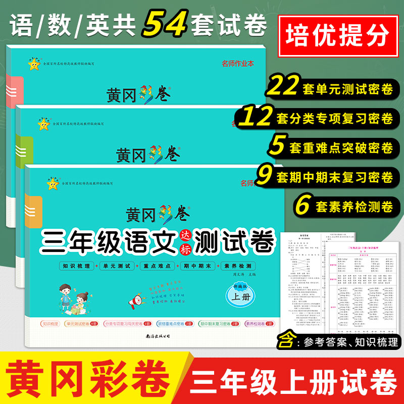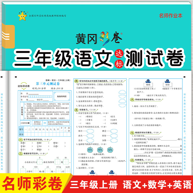 卷期中期末卷子专项训练冲刺100分 6年级试卷测试卷全套一年级二年级三四五六上册下册小学数学语文英语同步单元 人教版 黄冈彩卷1