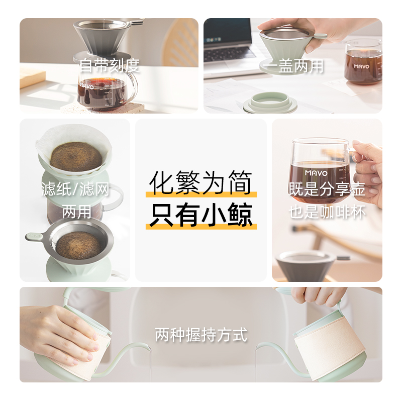 家用便携 咖啡器具套装 MAVO小鲸手冲咖啡壶套装 手冲壶分享壶滤杯