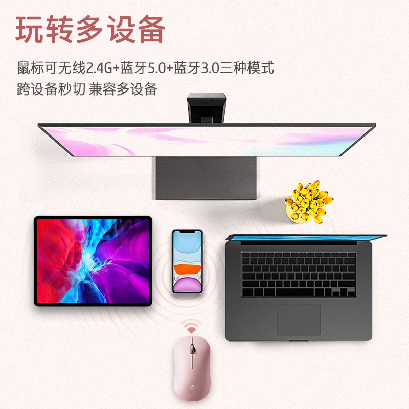 hp惠普无线鼠标蓝牙静音笔记本电脑办公女生可爱适用ipad平板mac