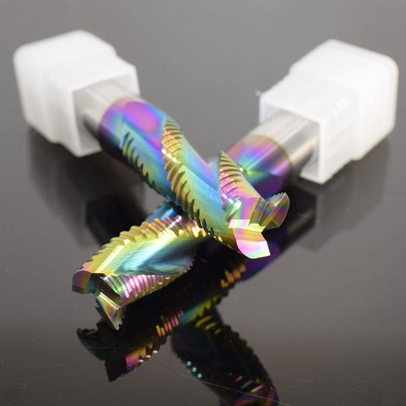 铝用粗皮铣刀3刃七彩高效60度钨钢波纹合金加长开粗数控加工专用4