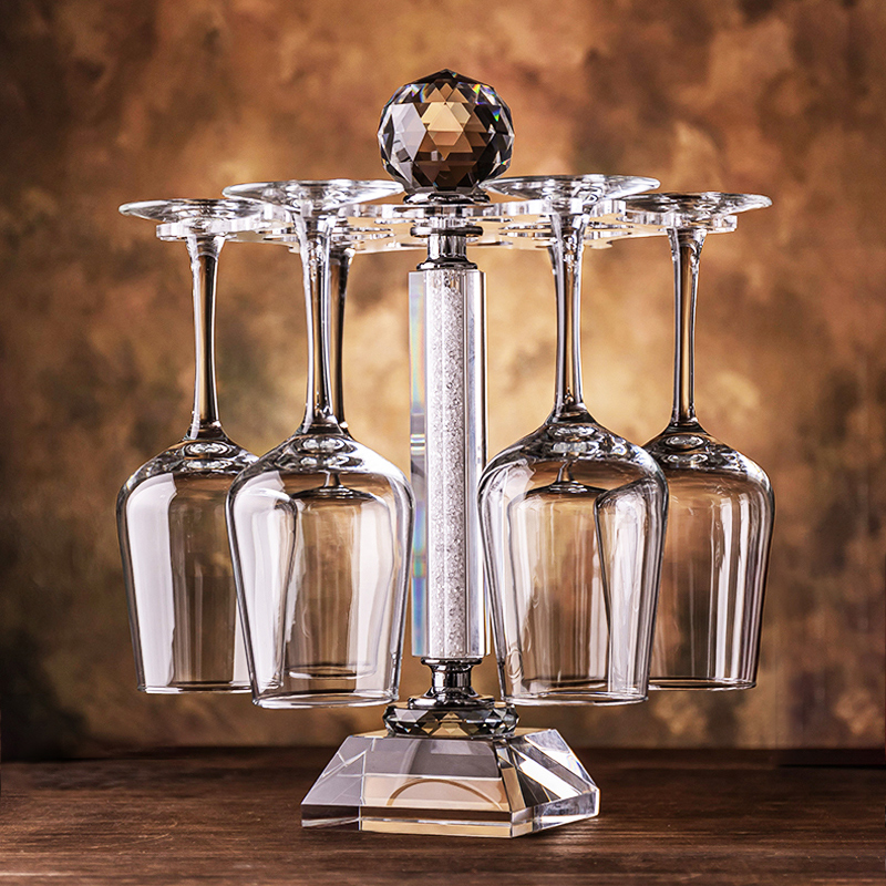 水晶挂杯架红酒杯葡萄酒杯杯架镶钻杯架家用倒挂旋转酒架酒柜装 饰