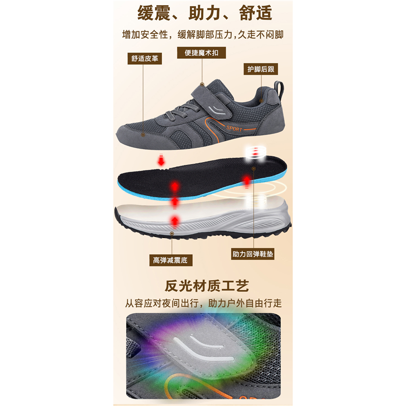 运动鞋 加宽中老年舒适爸爸鞋 防滑软底女 男春秋款 寿足力老人健步鞋
