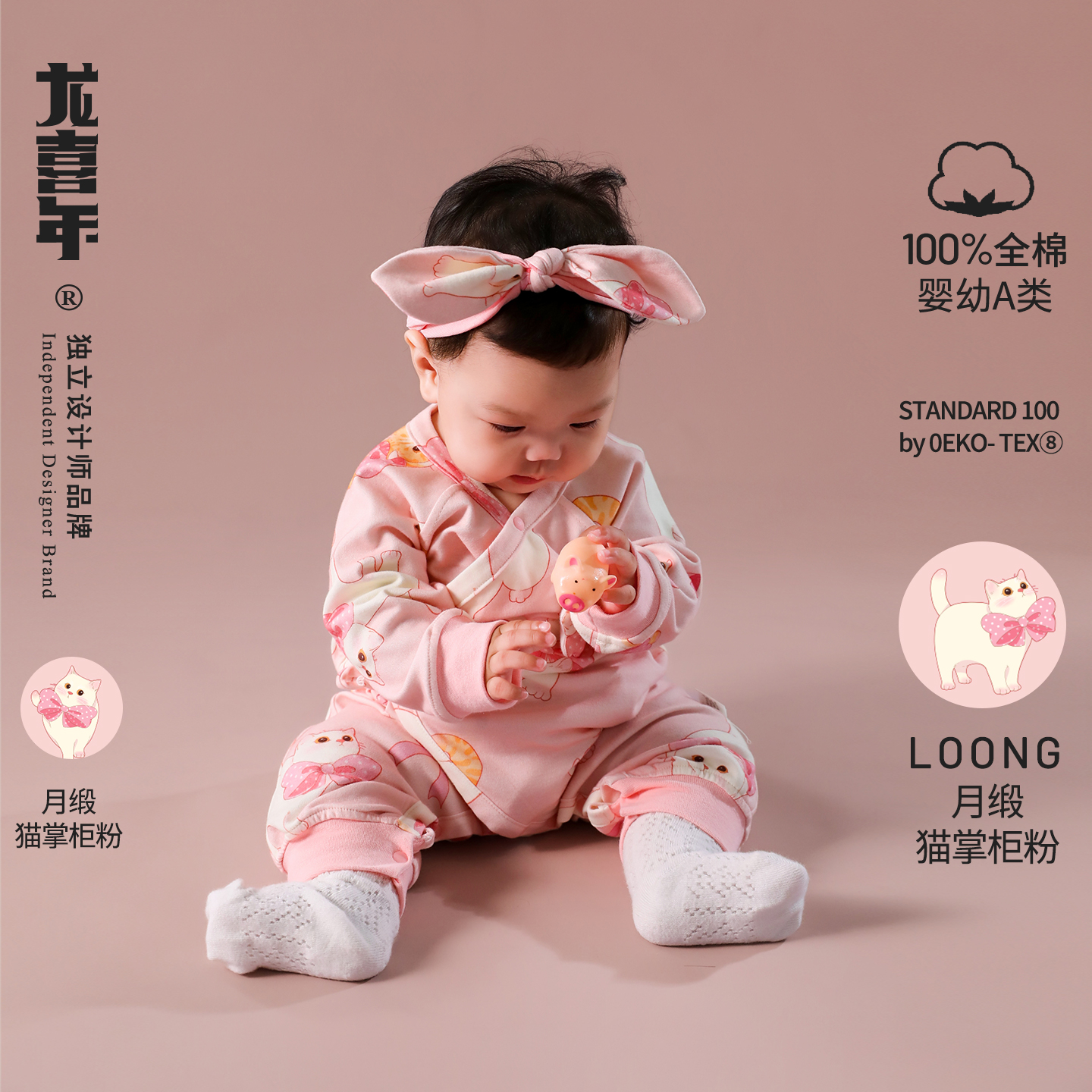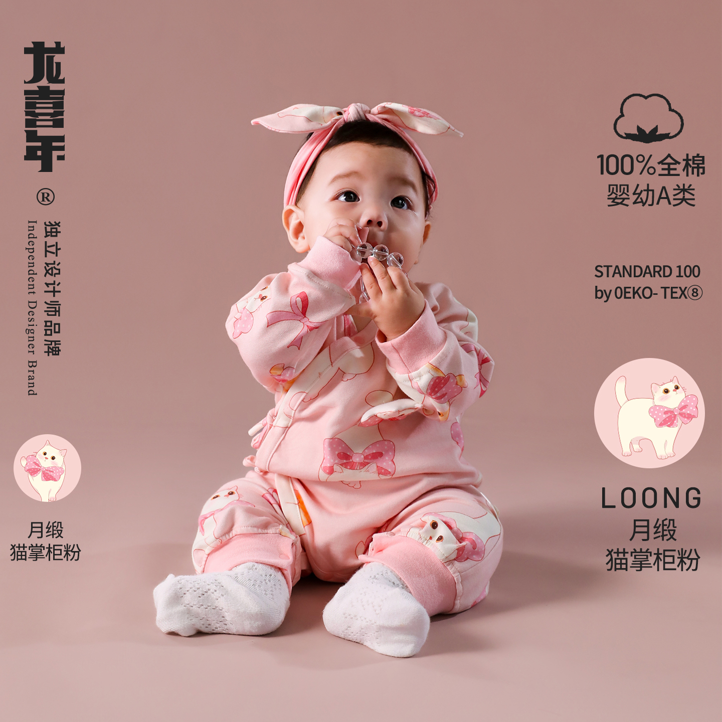 龙喜年婴儿满月宝宝衣服月缎猫掌柜粉周岁礼服百日百岁宴连体秋
