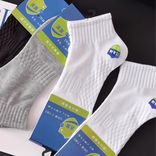 袜子男纯棉春秋款 中筒袜 短袜7a抗菌灰色无骨防臭脚吸汗青少年男士